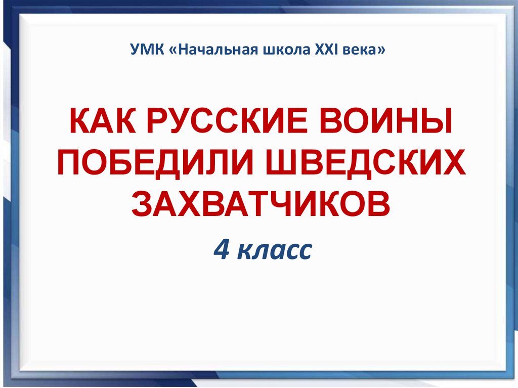 УМК «Начальная школа ХХI века»КАК РУССКИЕ ВОИНЫ