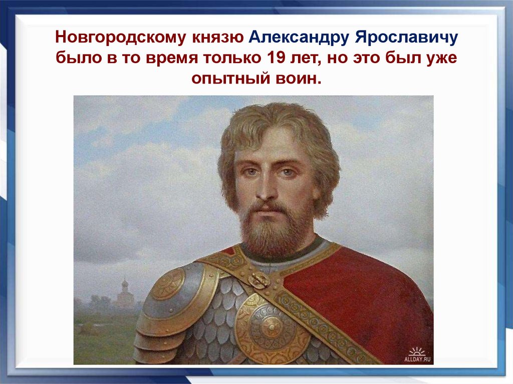 Новгородскому князю Александру Ярославичубыло в то время только 19 лет, но это был уже