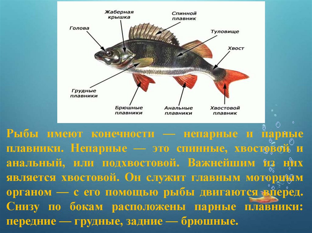 Рыбы имеют конечности — непарные и парныеплавники. Непарные — это спинные, хвостовой и