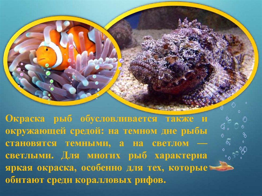 Окраска рыб обусловливается также иокружающей средой: на темном дне рыбы