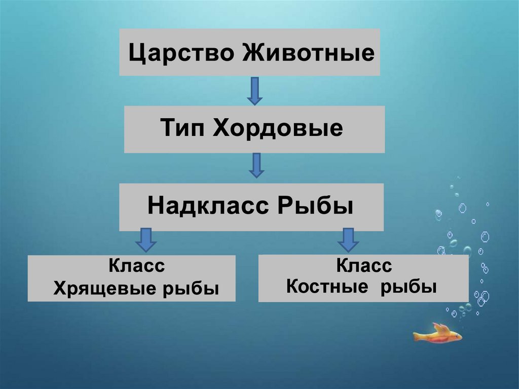 Рыбы — позвоночные животные, живущиетолько в воде.