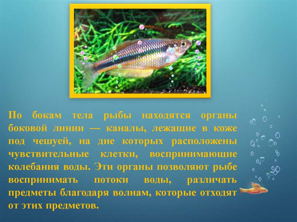 По бокам тела рыбы находятся органыбоковой линии — каналы, лежащие в коже