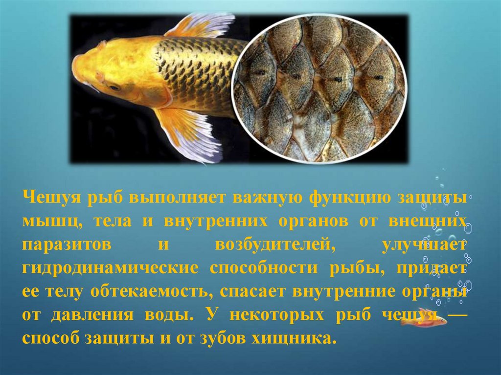 Чешуя рыб выполняет важную функцию защитымышц, тела и внутренних органов от внешних