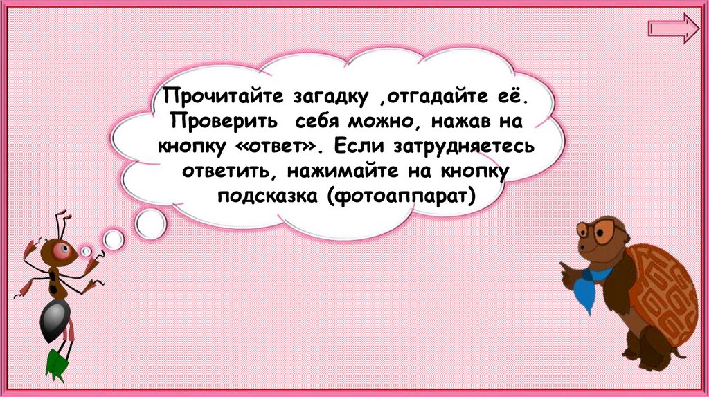 Прочитайте загадку ,отгадайте её.Проверить себя можно, нажав на