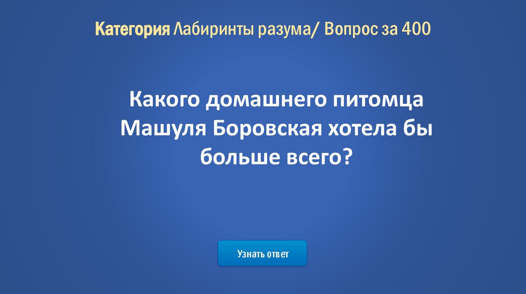 Категория Лабиринты разума/ Вопрос за 400Какого домашнего питомца
