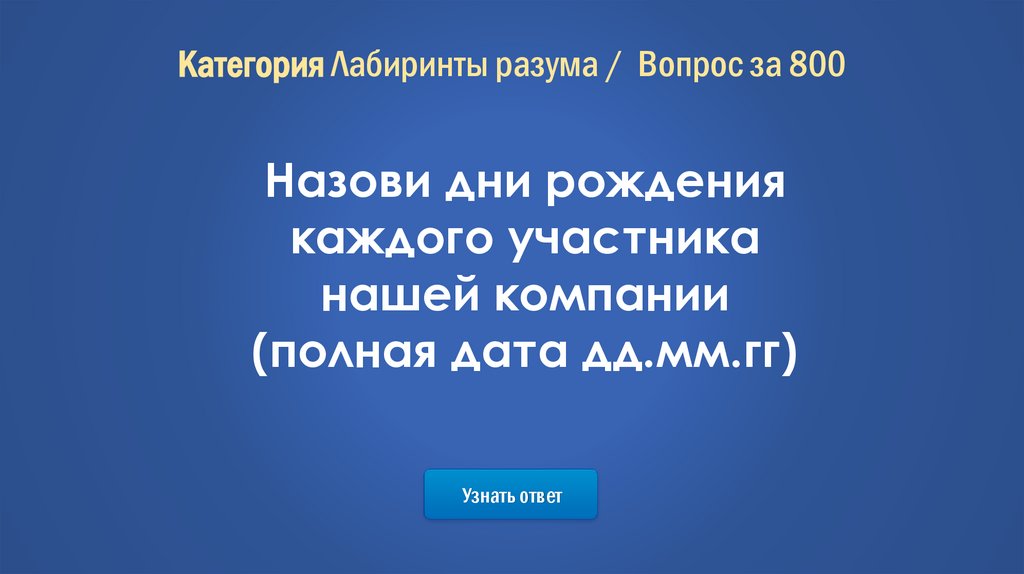 Категория Лабиринты разума / Вопрос за 800Назови дни рождения