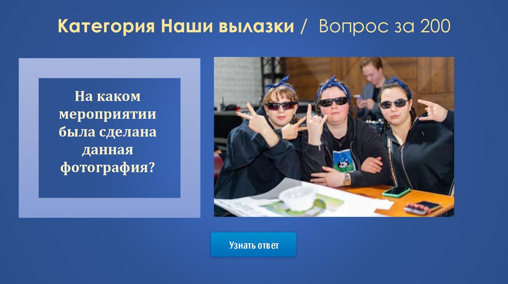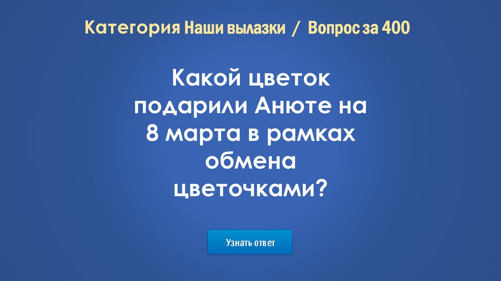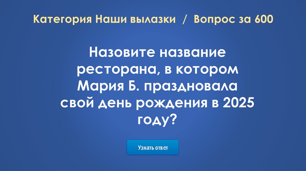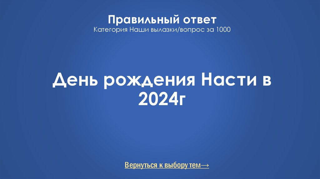 24. Правильный ответ Категория наши вылазки / Вопрос за 600
