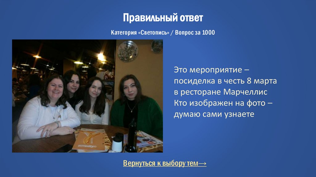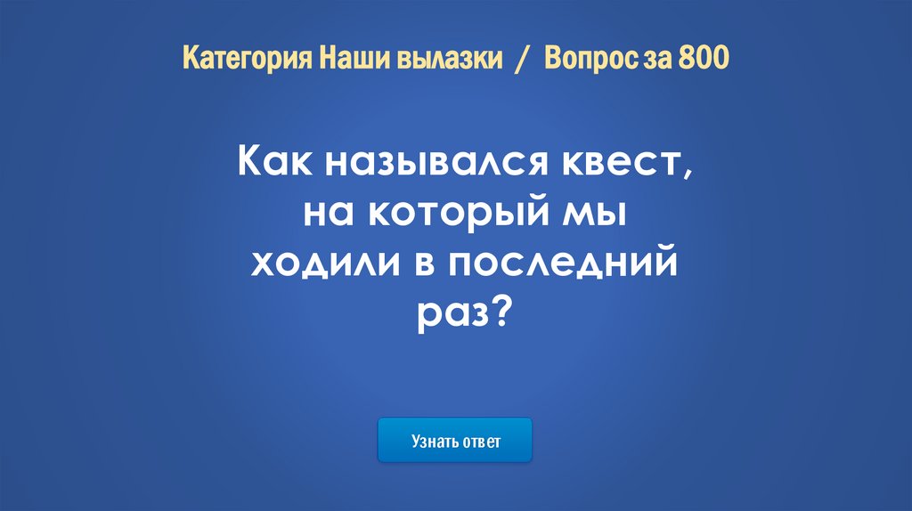 26. Правильный ответ Категория Наши вылазки / Вопрос за 800
