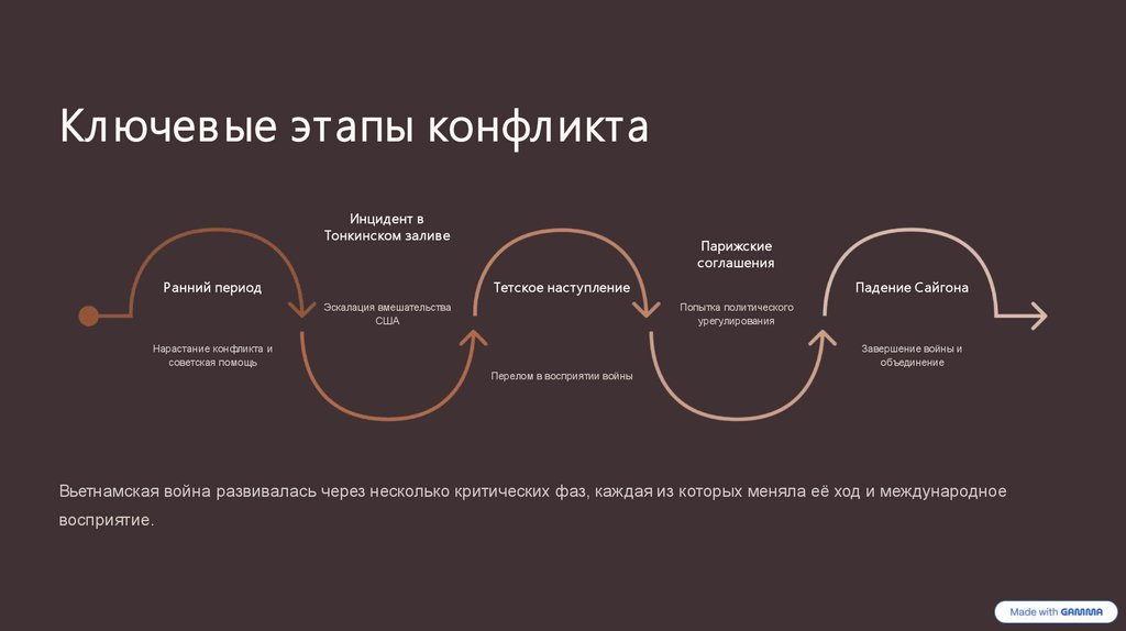Вьетнамская война развивалась через несколько критических фаз, каждая из которых меняла её ход и международное