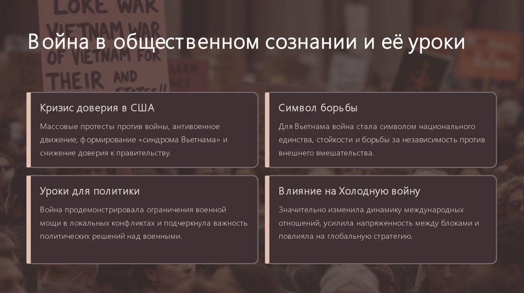 В ойна в общественном сознании и её урокиКризис доверия в США