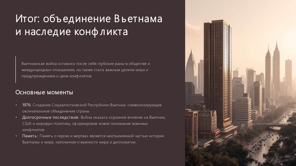 Итог: объ единение В ь етнамаи наследие конф л икта