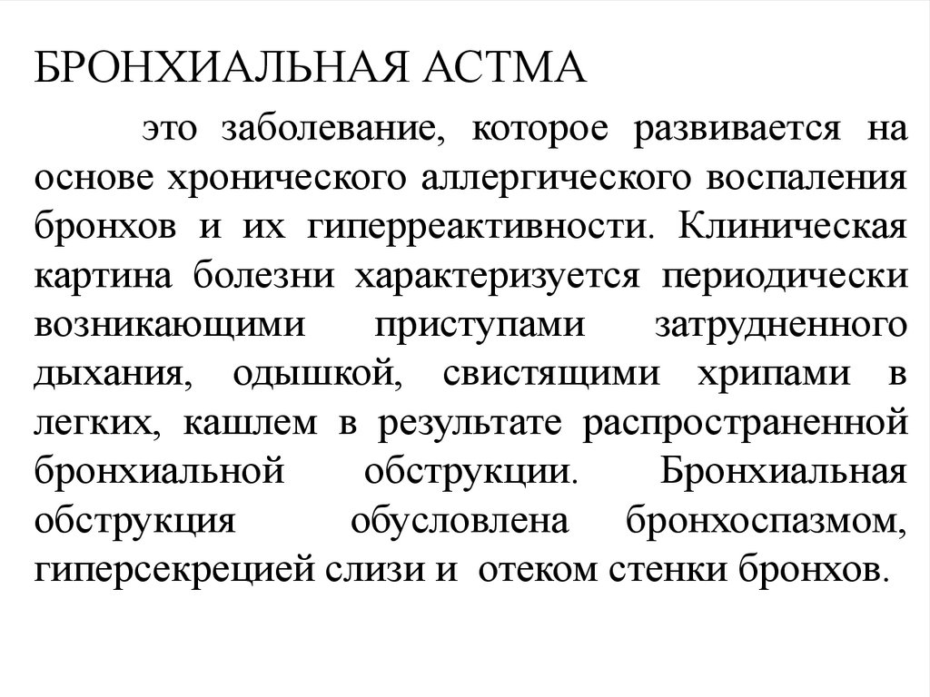 БРОНХИАЛЬНАЯ АСТМАэто заболевание, которое развивается на