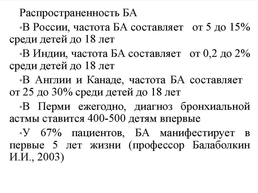 Распространенность БА•В России, частота БА составляет от 5 до 15%