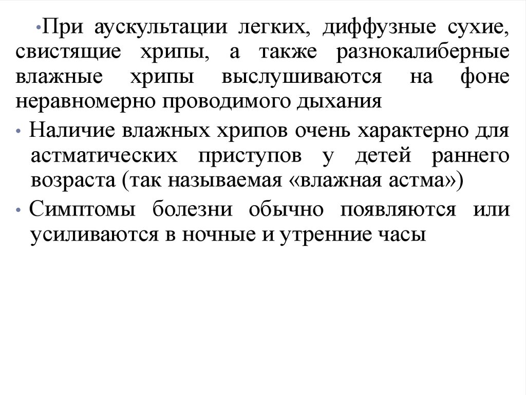 дыхания, одышкой, свистящими хрипами в
