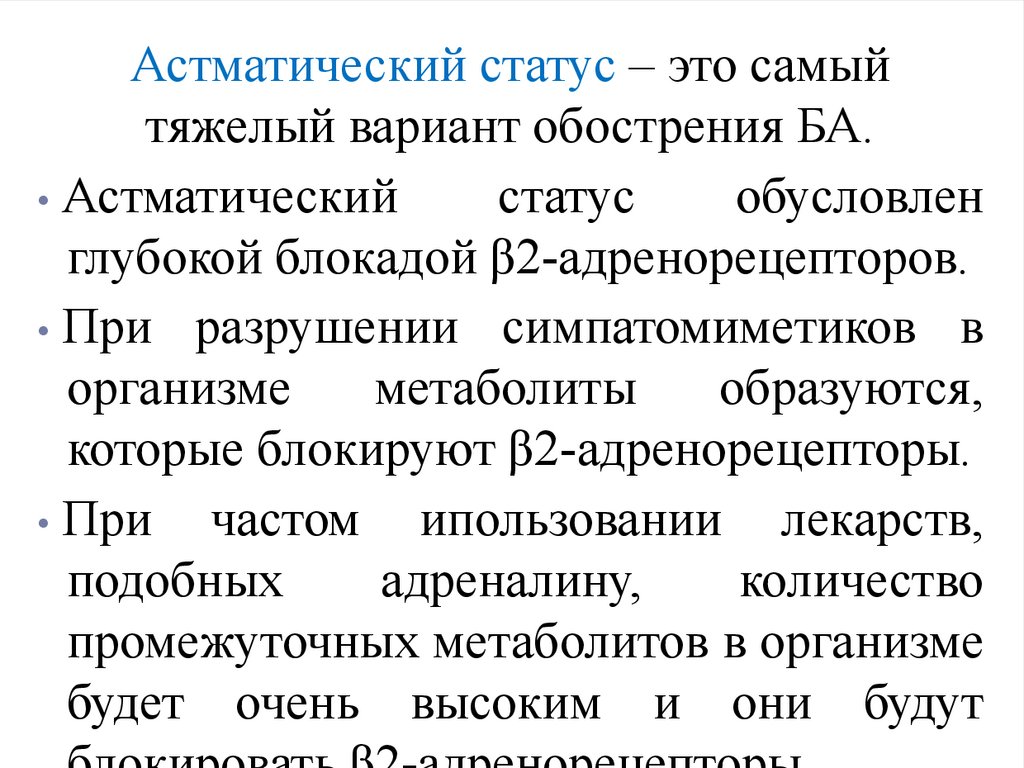 5. При астматическом статусе: β2 – агонисты
