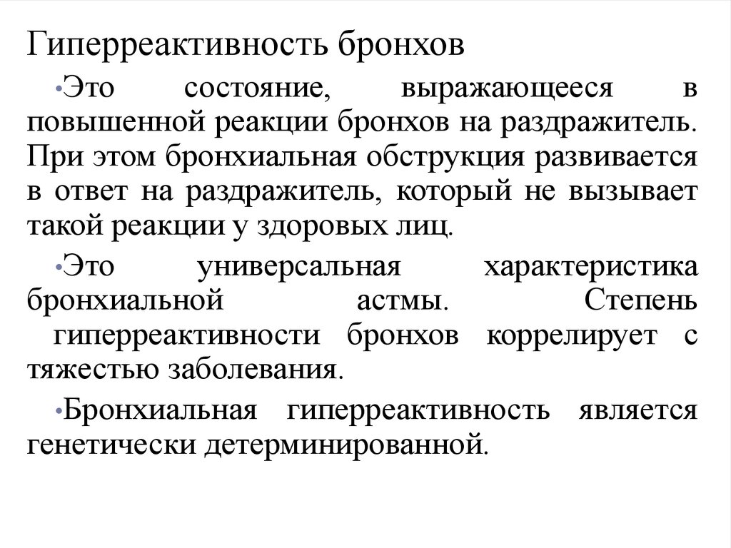 •Бронхиальная гиперреактивность является