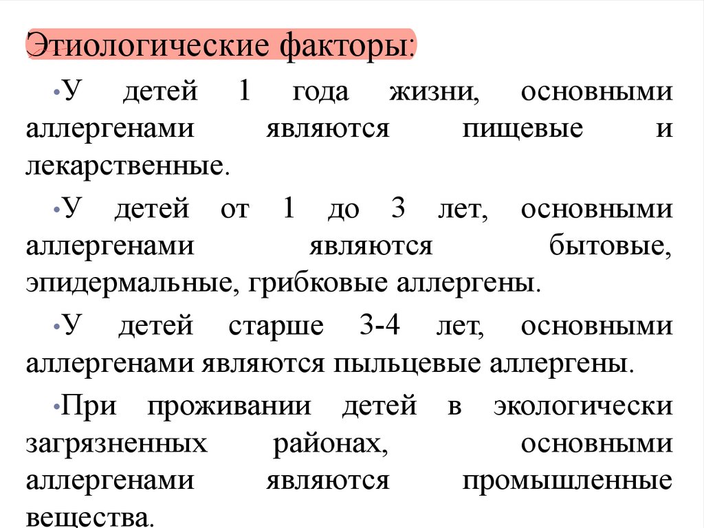 Этиологические факторы:•У