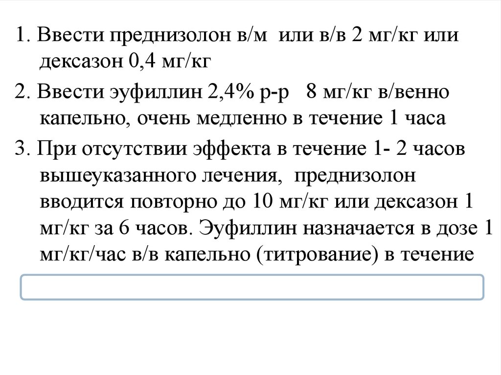2. Ввести эуфиллин 2,4% р-р 8 мг/кг в/венно