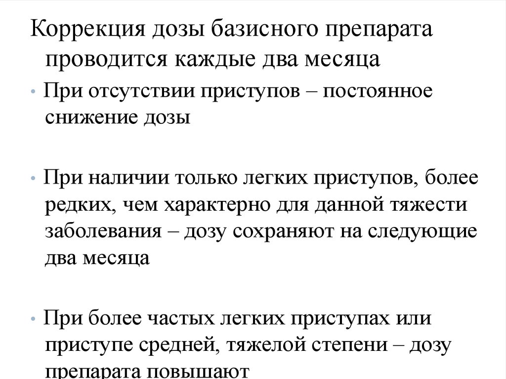 Коррекция дозы базисного препаратапроводится каждые два месяца