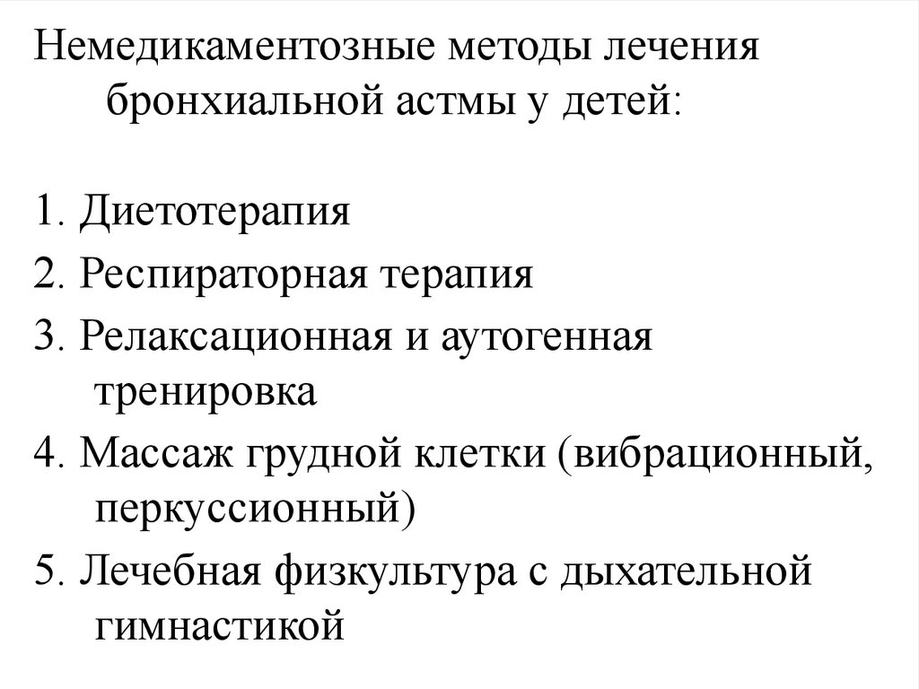 Немедикаментозные методы лечениябронхиальной астмы у детей: