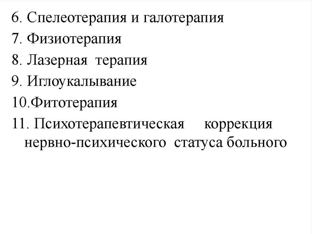 6. Спелеотерапия и галотерапия7. Физиотерапия