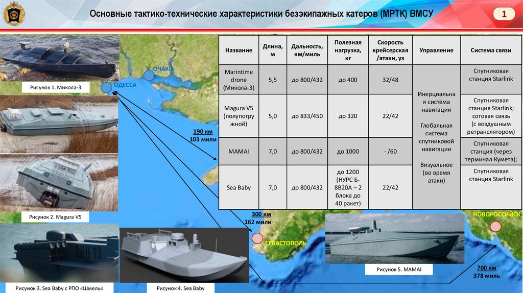 Основные тактико-технические характеристики безэкипажных катеров (МРТК) ВМСУНазвание
