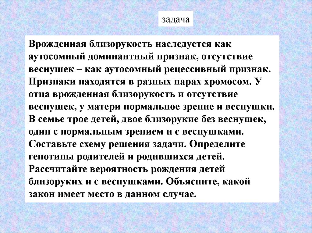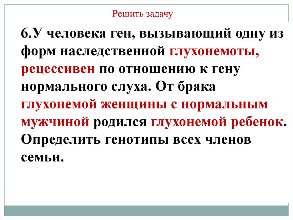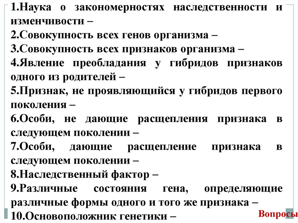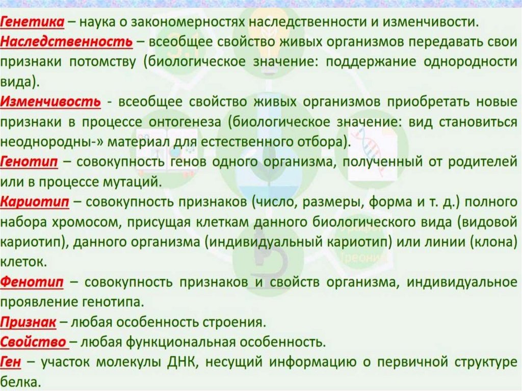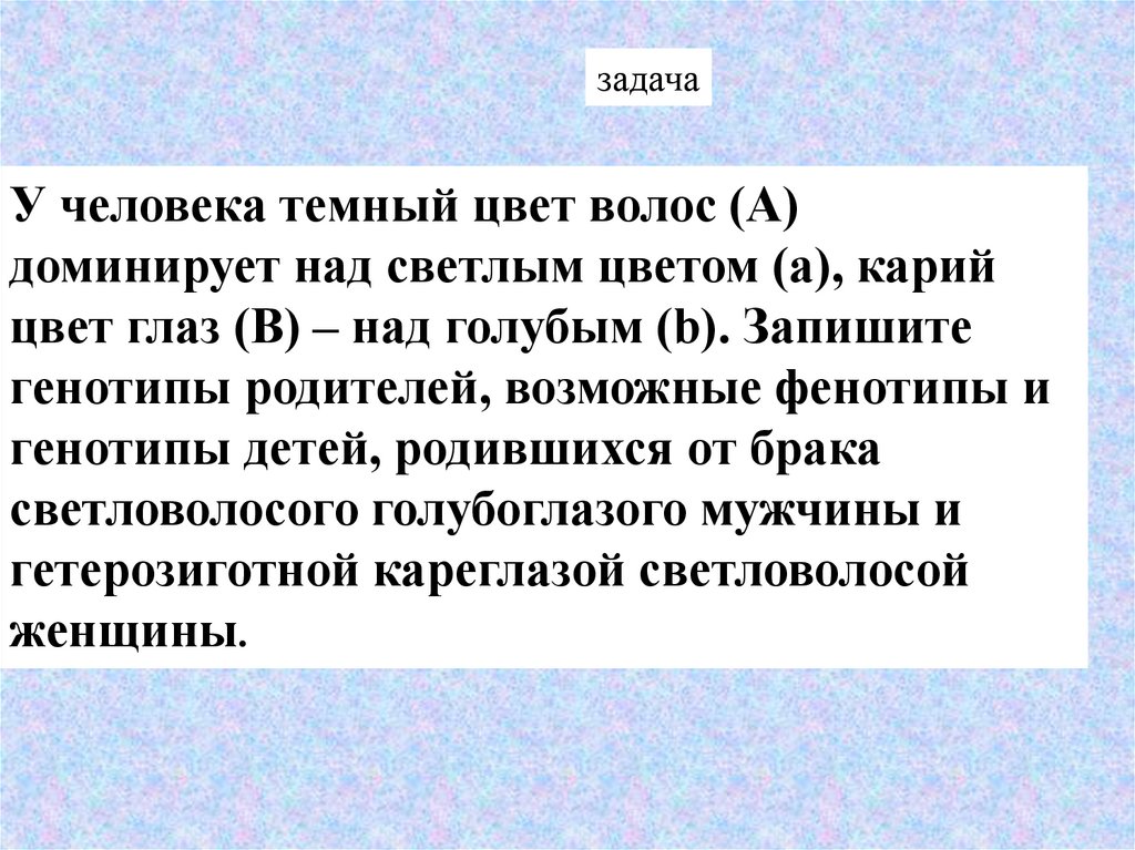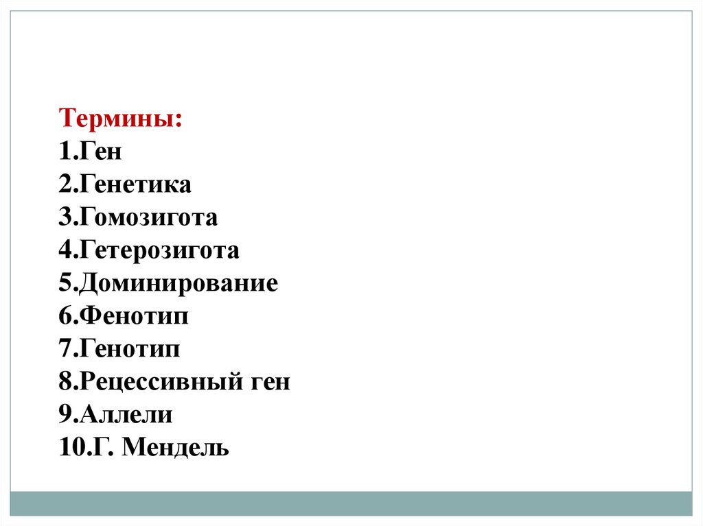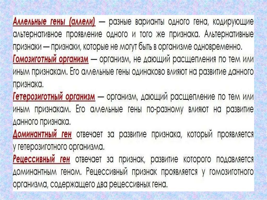 Ген Генотип Фенотип Доминирование Рецессивный Расщепление –Рецессивный признак –