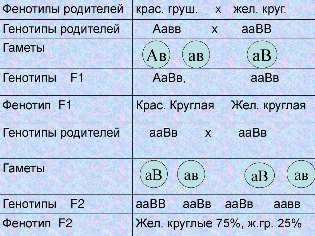 Каковы генотипы родителей, гибридов F1 и F2, если