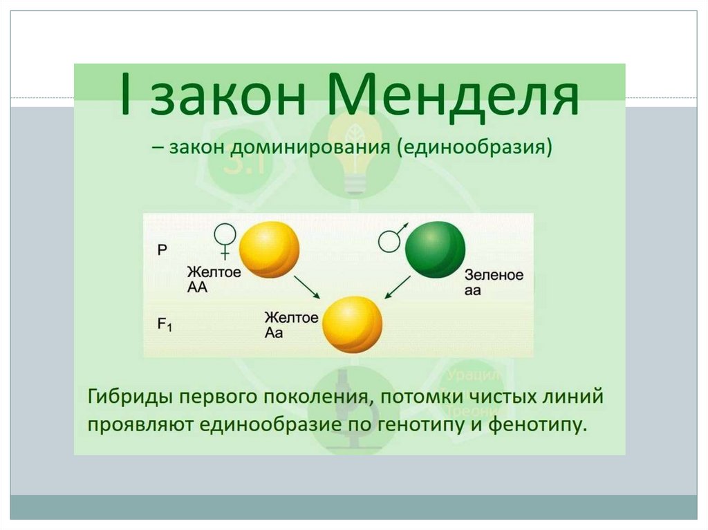 8. I закон Менделя - закон доминирования, единообразия гибридов первого поколения: