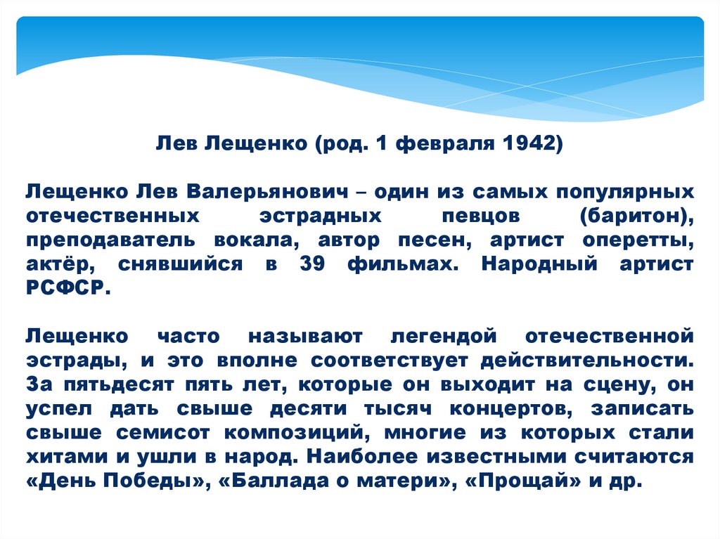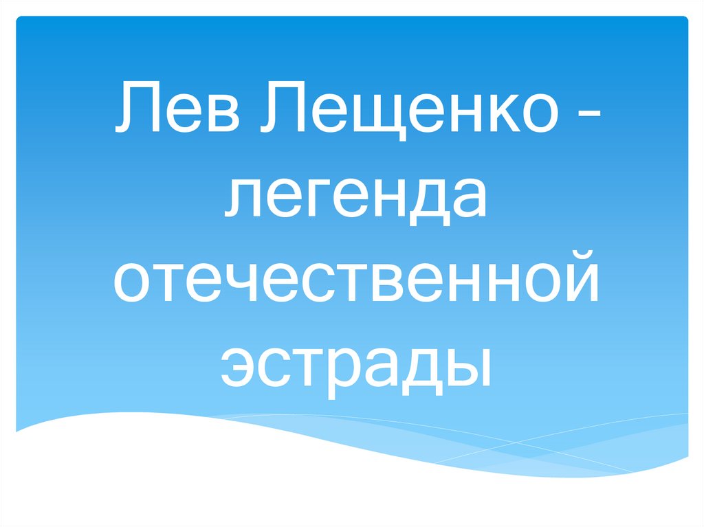 Презентация на тему_ _Лев Лещенко - легенда отечественной эстрады_