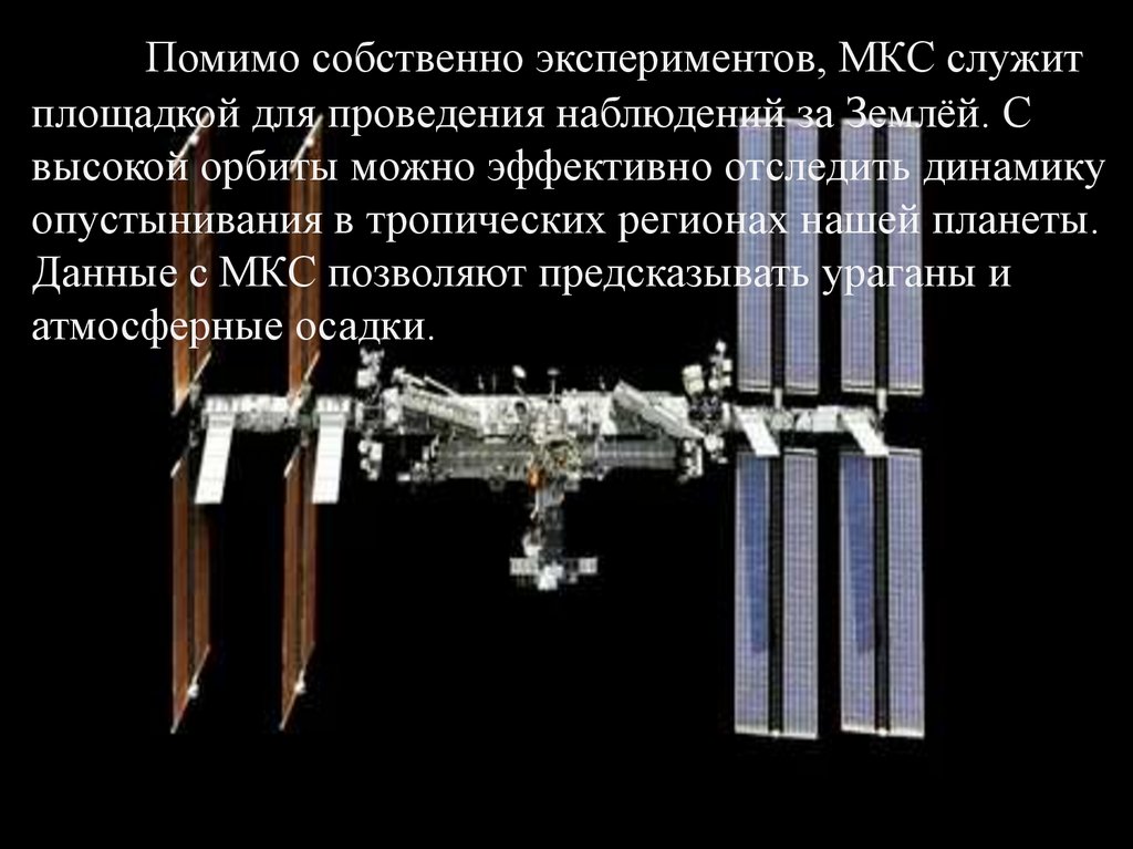 Помимо собственно экспериментов, МКС служит