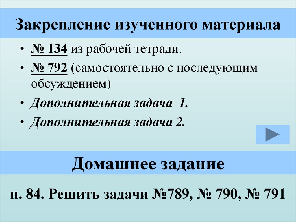 п. 84. Решить задачи №789, № 790, № 791