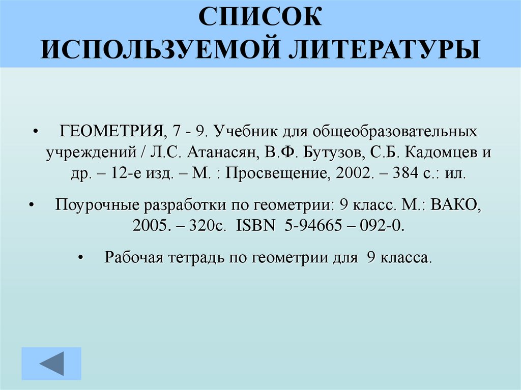 СПИСОКИСПОЛЬЗУЕМОЙ ЛИТЕРАТУРЫ