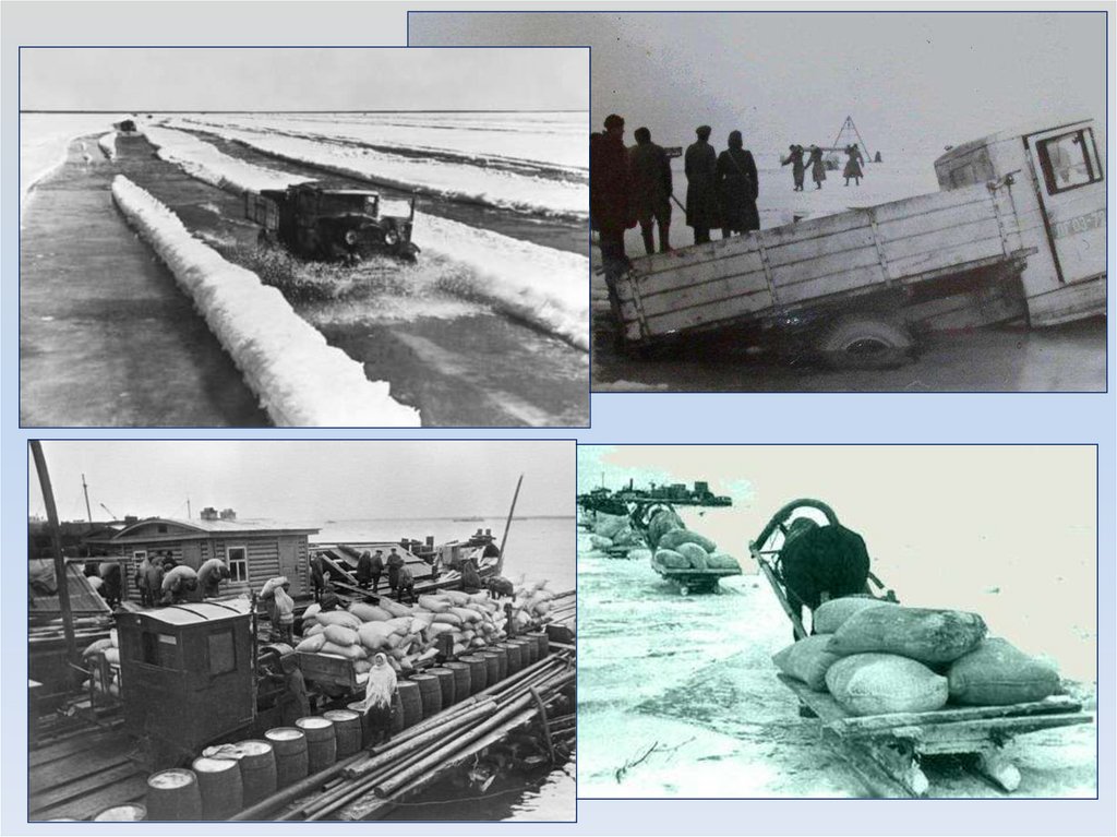 В зимний период 1941-1942 гг., когда вода на Ладожском озере замерзла,