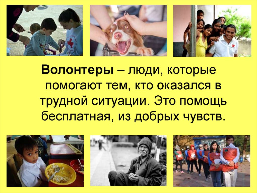 Волонтеры – люди, которыепомогают тем, кто оказался в