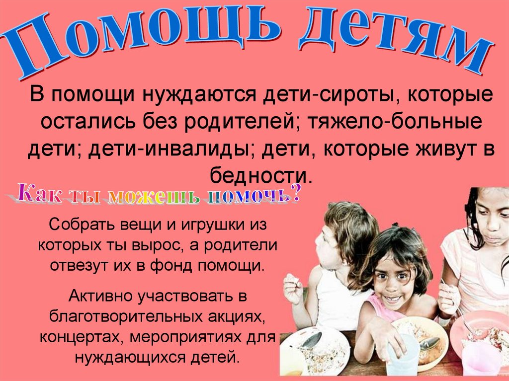 В помощи нуждаются дети-сироты, которыеостались без родителей; тяжело-больные