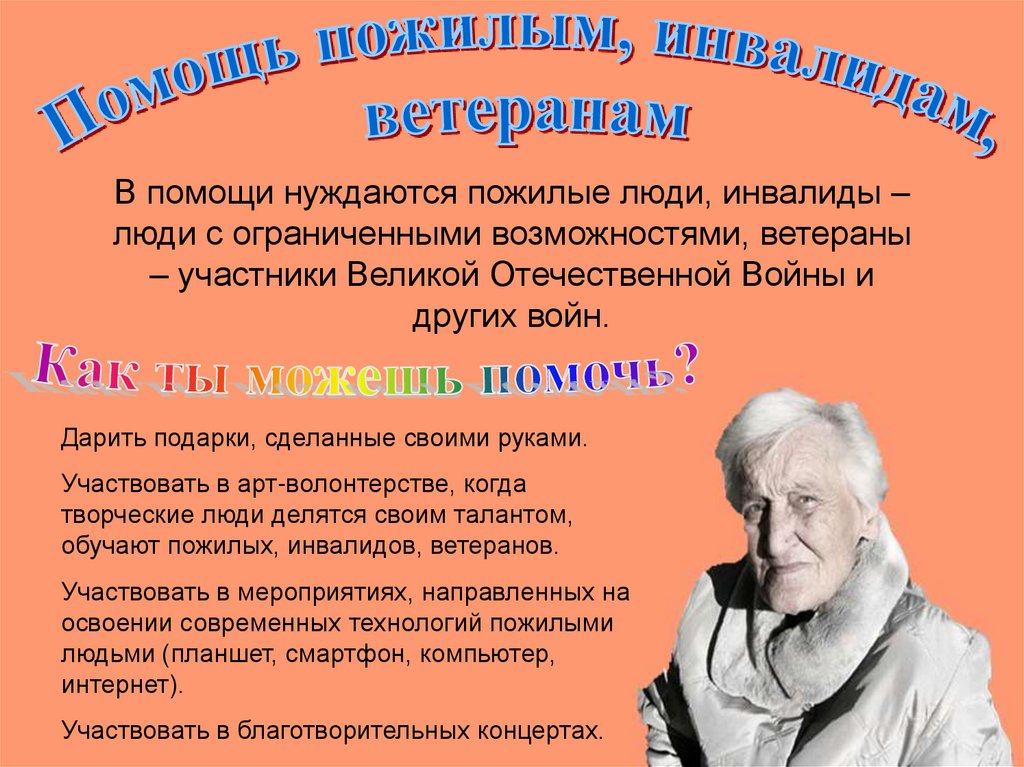 В помощи нуждаются пожилые люди, инвалиды –люди с ограниченными возможностями, ветераны