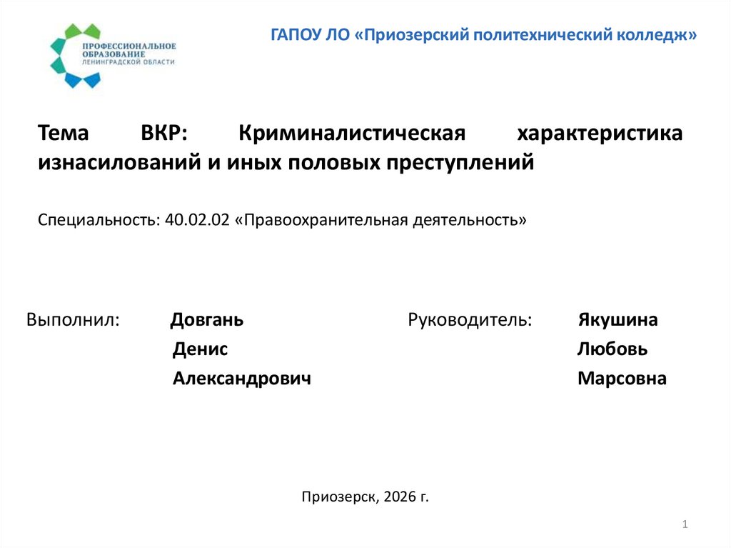 1. Тема ВКР: Криминалистическая характеристика изнасилований и иных половых преступлений
