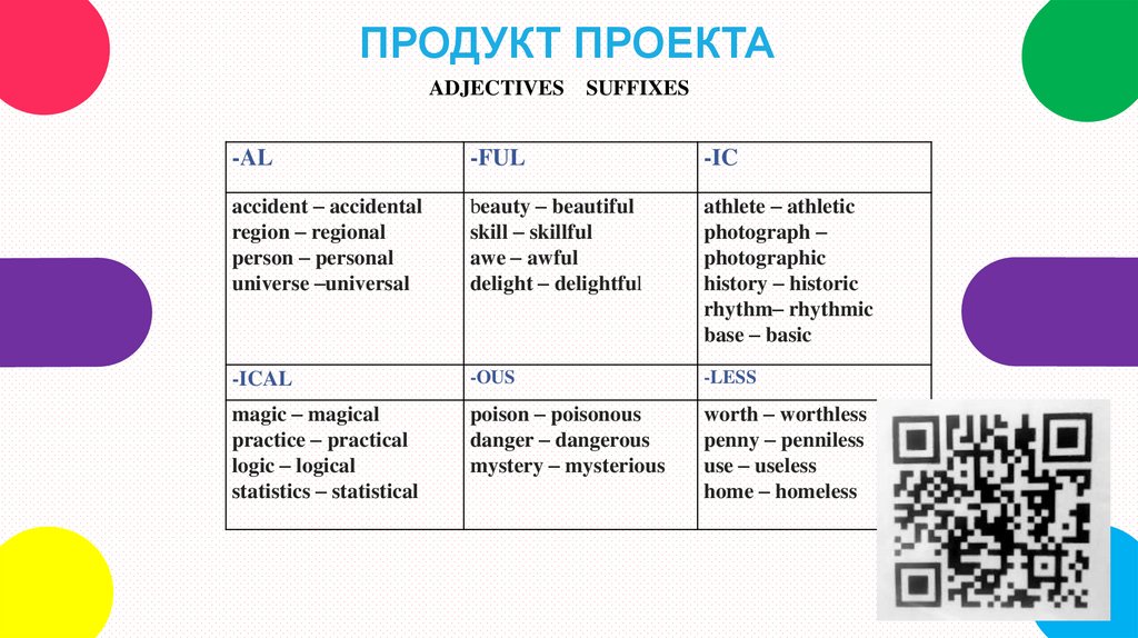 ПРОДУКТ ПРОЕКТАADJECTIVES