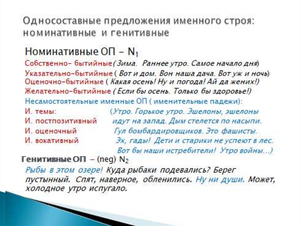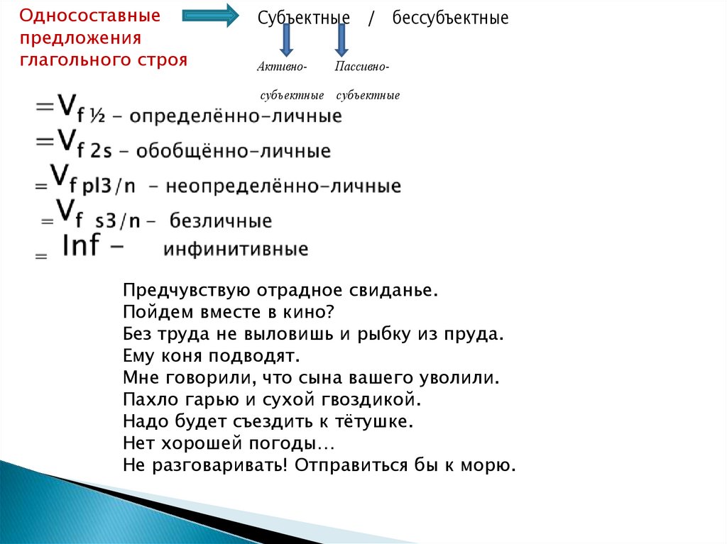 1. Простое предложение: главные члены предложения, односоставные предложения.