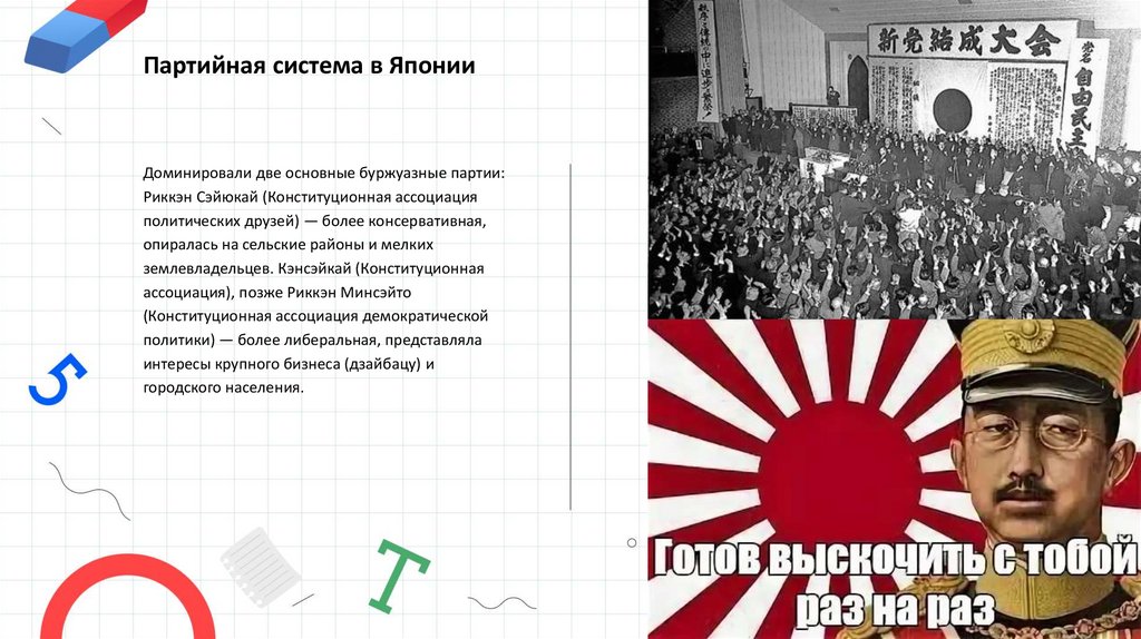 партий. Лозунг «Тачи-но нара-синсэй» («Правление должно быть в