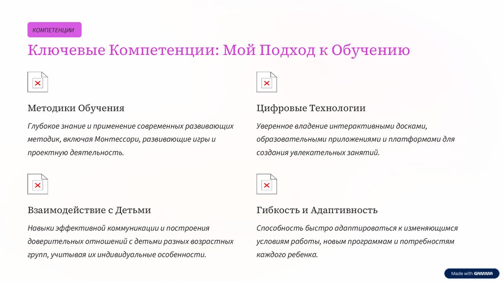 КОМПЕТЕНЦИИКлючевые Компетенции: Мой Подход к Обучению