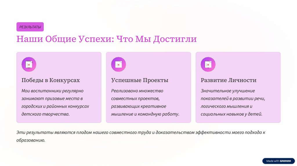 Эти результаты являются плодом нашего совместного труда и доказательством эффективности моего подхода к