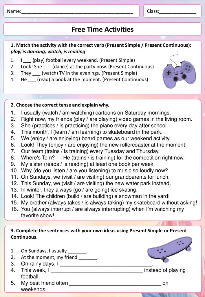 1. Match the activity with the correct verb (Present Simple / Present Continuous):