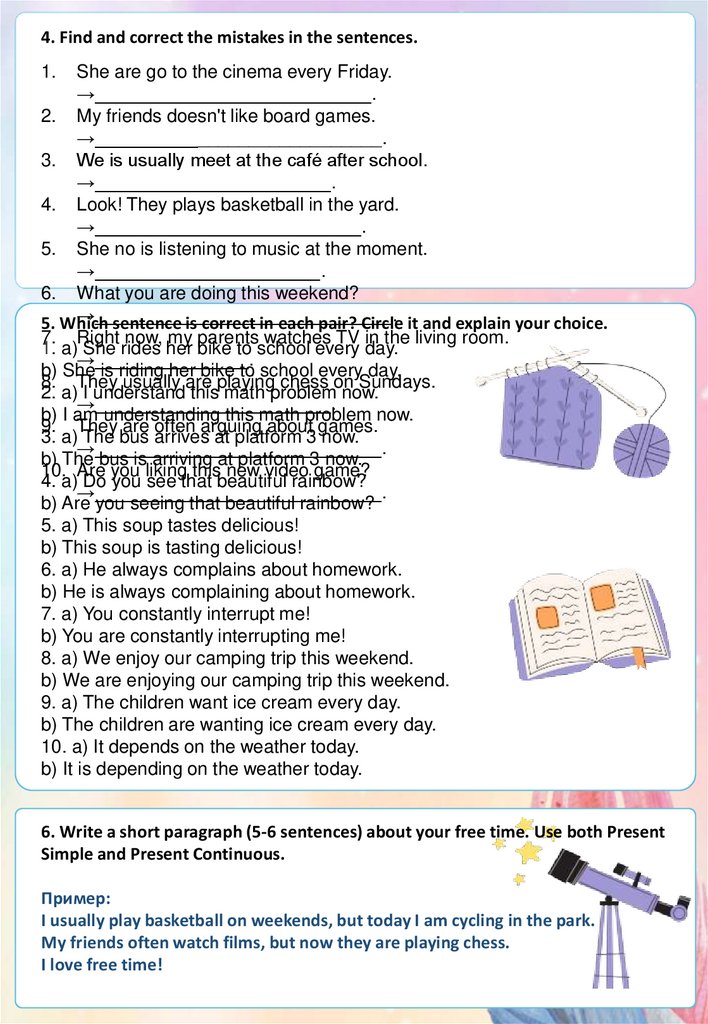 6. Write a short paragraph (5-6 sentences) about your free time. Use both Present