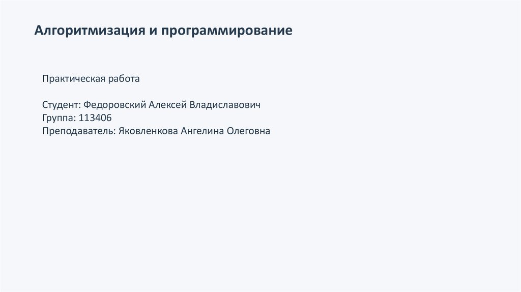 Алгоритмизация и программированиеПрактическая работа