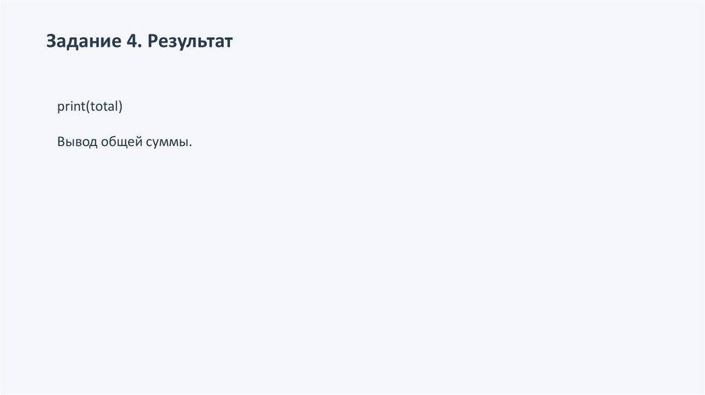 Задание 4. Результатprint(total)
