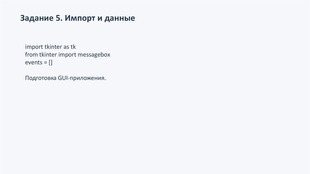 Задание 5. Импорт и данныеimport tkinter as tk