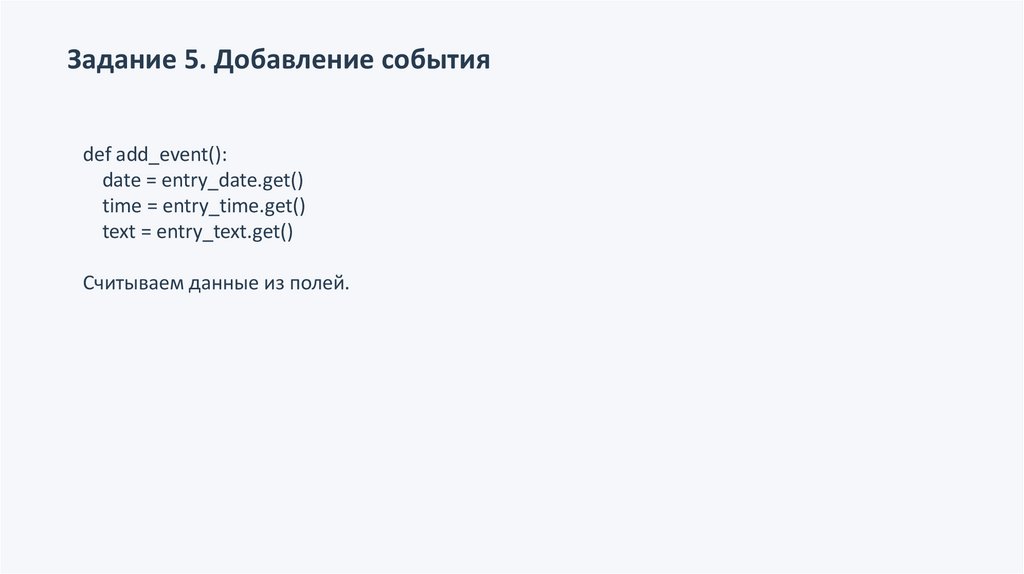 Задание 5. Добавление событияdef add_event():
