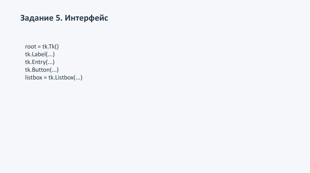 Задание 5. Интерфейсroot = tk.Tk()